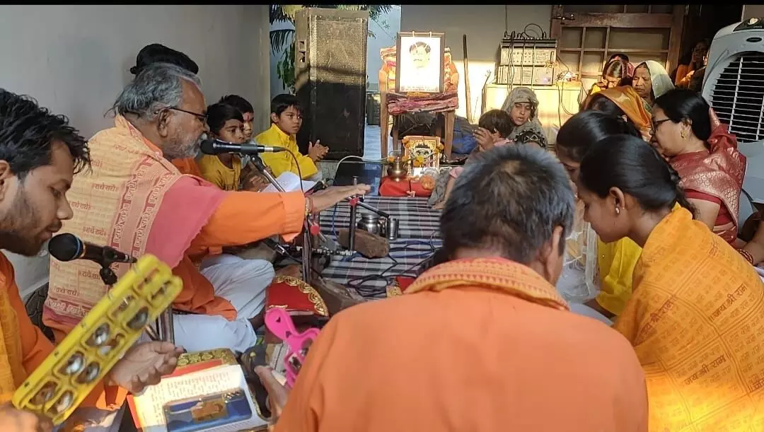 सुंदरकांड पाठ करते हुए संगीत मण्डली