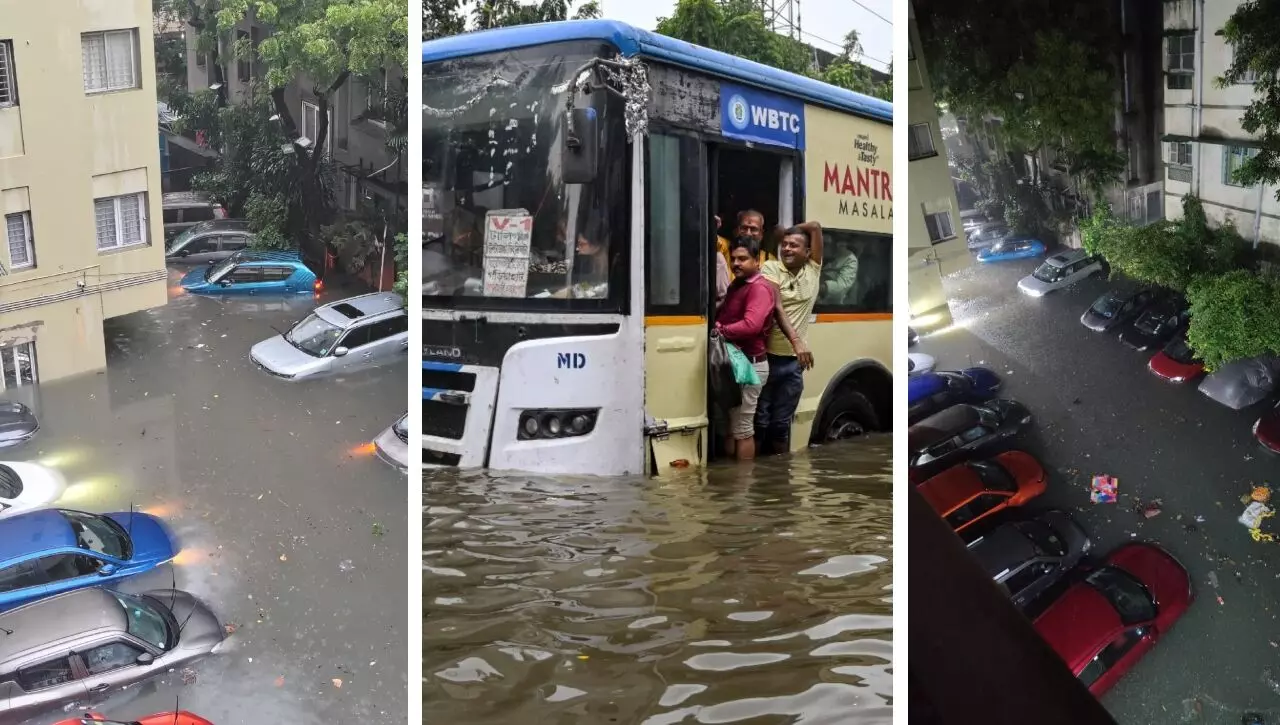 बारिश के कारण स्कूल-कॉलेजों में छुट्टी घोषित कर दी गई हैं। सोशल मीडिया पर सड़कों और रिहायशी इलाकों में भरे पानी की तस्वीरें वायरल हो रही हैं। दुर्गा पूजा से कुछ ही दिन पहले आई इस बारिश ने प्रशासन की तैयारियों पर भी सवाल खड़े कर दिए हैं।
