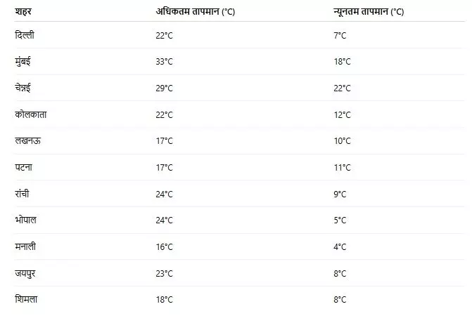 29 दिसंबर को प्रमुख शहरों का तापमान