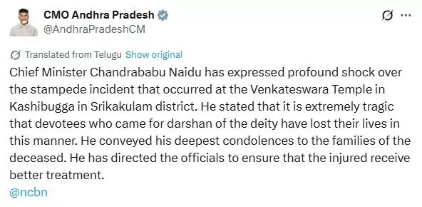सीएम चंद्रबाबू नायडू ने हादसे पर जताया दुख