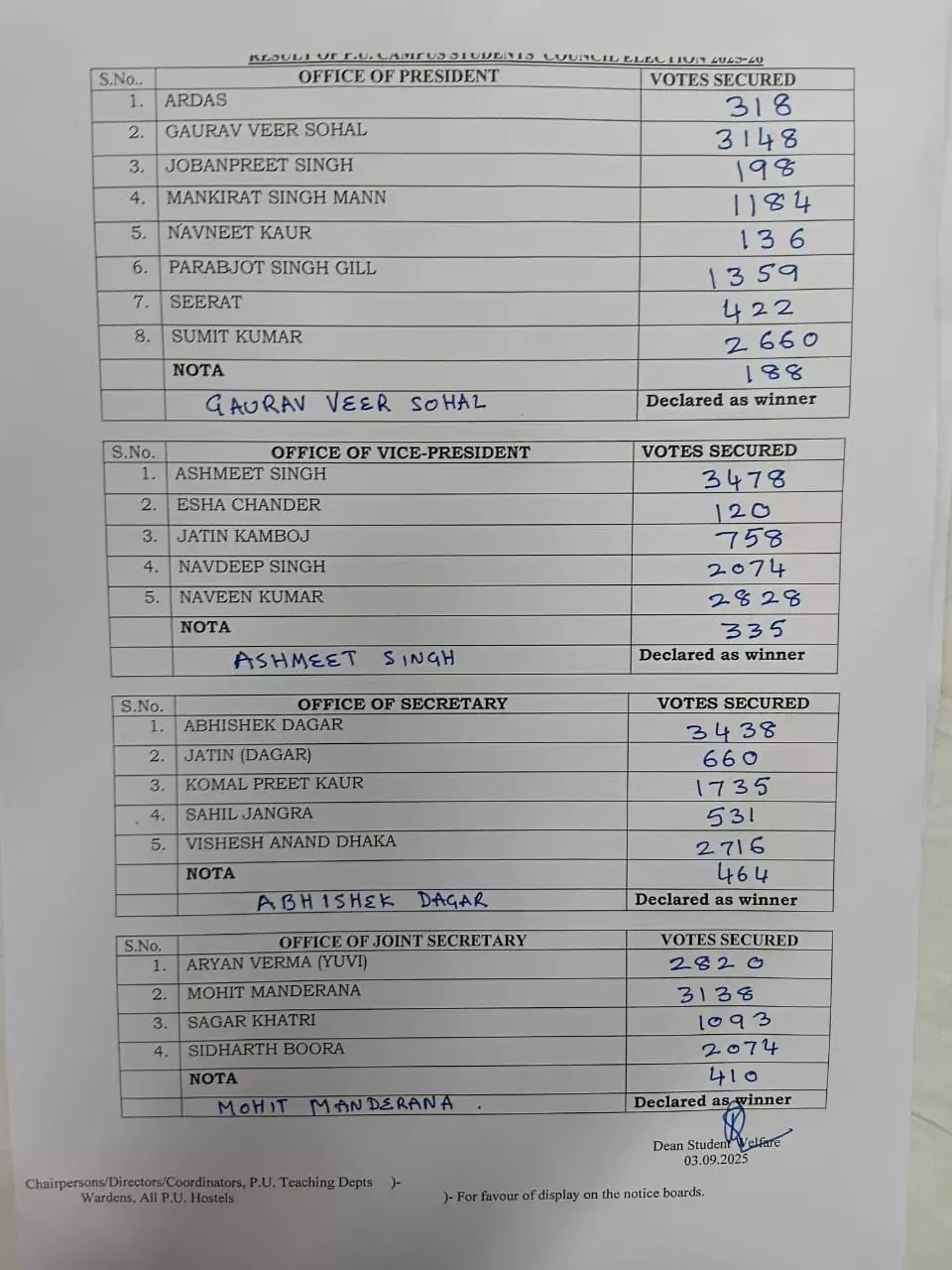 पंजाब विश्वविद्यालय: नवनिर्वाचित पदाधिकारी