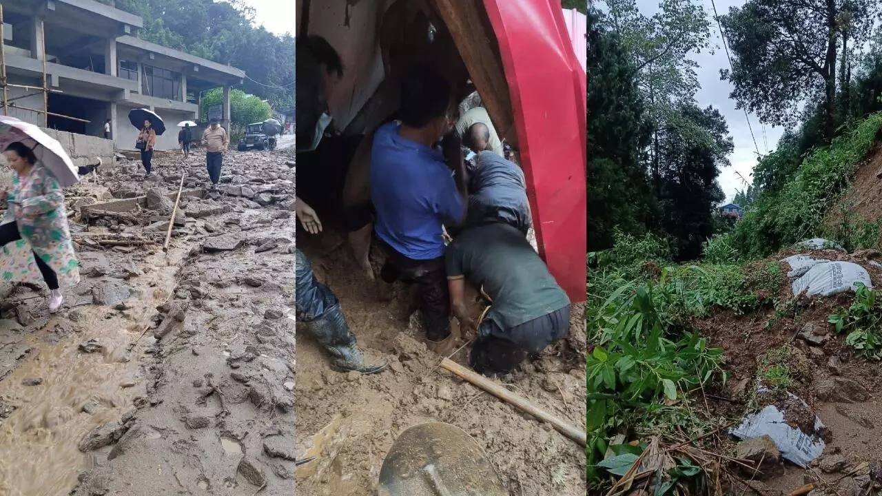 भारी बारिश से पूरे जिले में कई जगहों पर भूस्खलन हुए हैं। कुर्सियांग के पास राष्ट्रीय राजमार्ग 110 पर हुसैन खोला इलाके में सड़कें कीचड़ और मलबे में दब गई हैं। कई गांवों से राजमार्ग तक पहुंचना मुश्किल हो गया है। सोशल मीडिया पर वायरल वीडियो में सड़कों पर फैला मलबा और टूटे पुल के दृश्य स्थिति की गंभीरता को दर्शा रहे हैं।