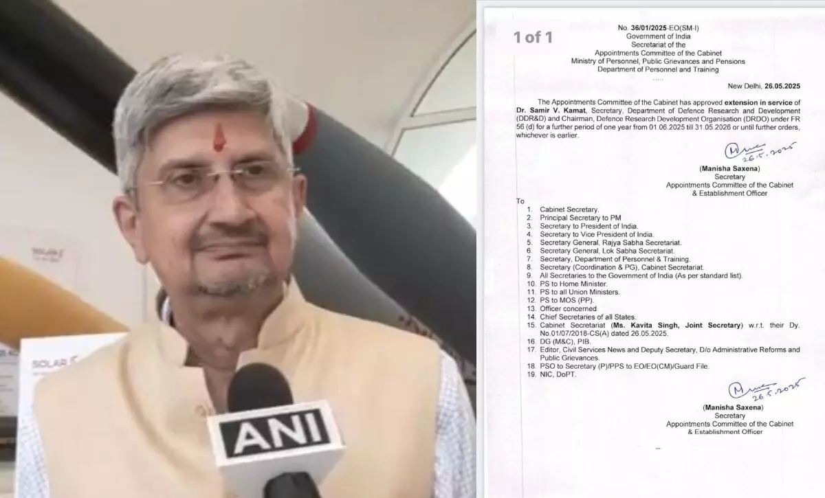 DRDO Chairman Dr. Sameer V. Kamat : केंद्रीय मंत्रिमंडल की नियुक्ति समिति ने डॉ. समीर वी. कामत के सेवा कार्यकाल एक वर्ष के लिए बढ़ाने की मंजूरी दी है। डॉ. कामत 31 मई 2026 तक रक्षा अनुसंधान एवं विकास विभाग (डीडीआरएंडडी) के सचिव और रक्षा अनुसंधान एवं विकास संगठन (डीआरडीओ) के अध्यक्ष पद पर बने रहेंगे। सरकार ने रक्षा अनुसंधान और तकनीकी क्षेत्र में उनके अनुभव और योगदान को देखते हुए कार्यकाल बढ़ाने का निर्णय लिया है।