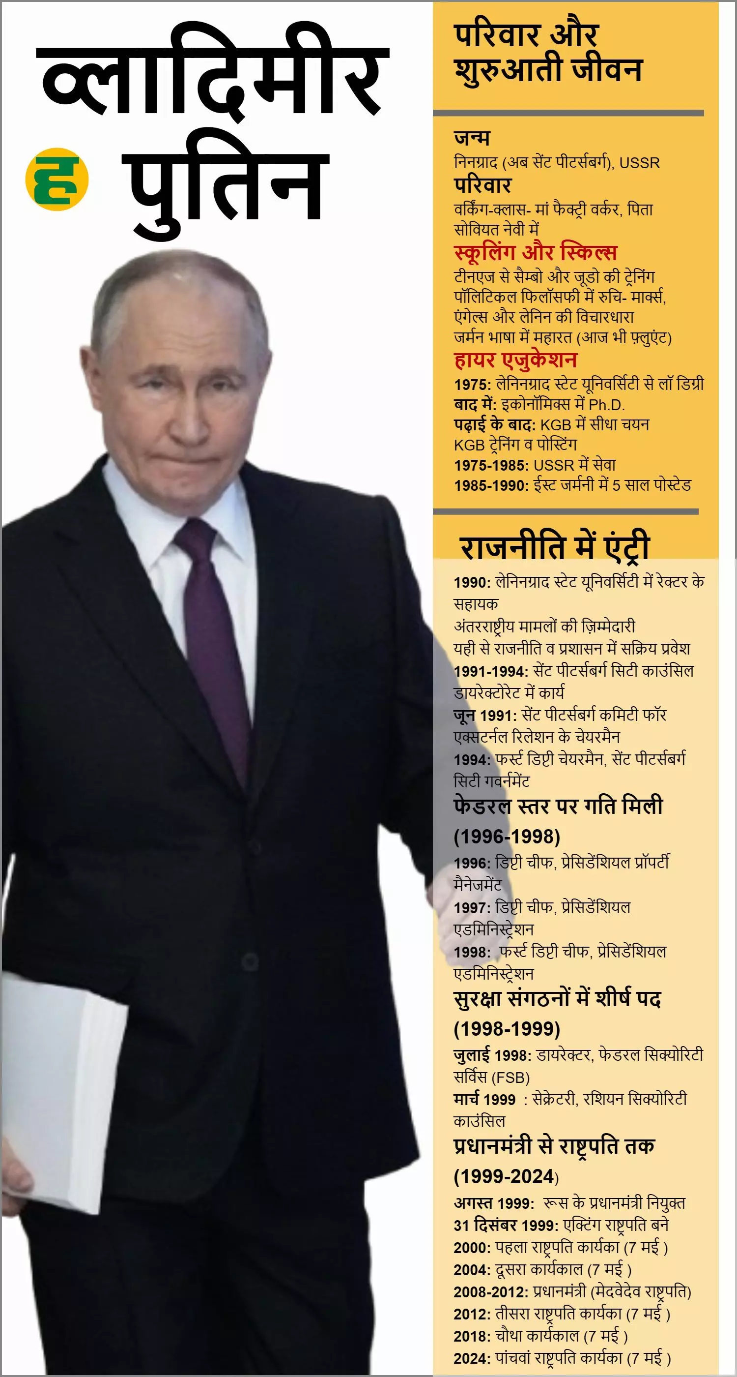 सुबह 11 बजे राष्ट्रपति भवन में उनका सेरेमोनियल रिसेप्शन होगा। इसके बाद वे राजघाट जाकर महात्मा गांधी को श्रद्धांजलि देंगे। हैदराबाद हाउस में पीएम मोदी के साथ उच्च-स्तरीय वार्ता का दौर चलेगा। दोपहर बाद दोनों नेता भारत-रूस बिजनेस फोरम को संबोधित करेंगे, जहां व्यापार और निवेश बढ़ाने पर फोकस रहेगा।