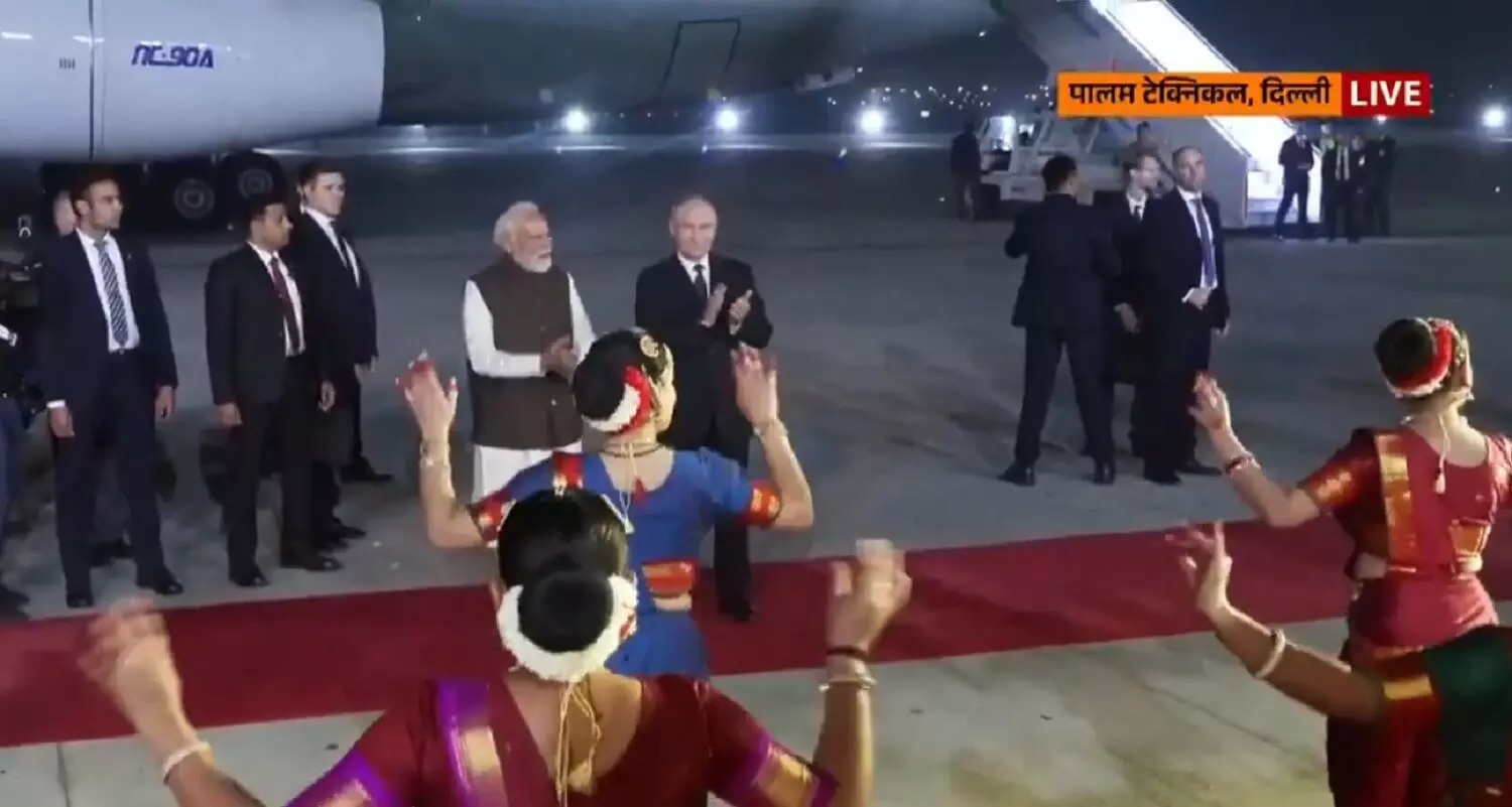 रूसी राष्ट्रपति व्लादिमीर पुतिन गुरुवार शाम को दो दिवसीय यात्रा पर भारत पहुंचे। प्रधानमंत्री नरेंद्र मोदी खुद एयरपोर्ट पर गर्मजोशी से पुतिन का स्वागत किया। दोनों नेताओं ने एक-दूसरे को गले लगाया और एक ही गाड़ी में बैठकर एयरपोर्ट से रवाना हुए।