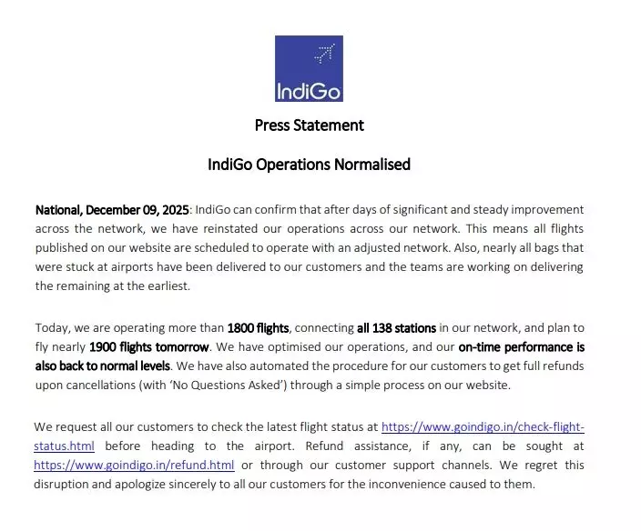 — IndiGo (@IndiGo6E) December 9, 2025 - 9 Dec 2025 3:01 PM