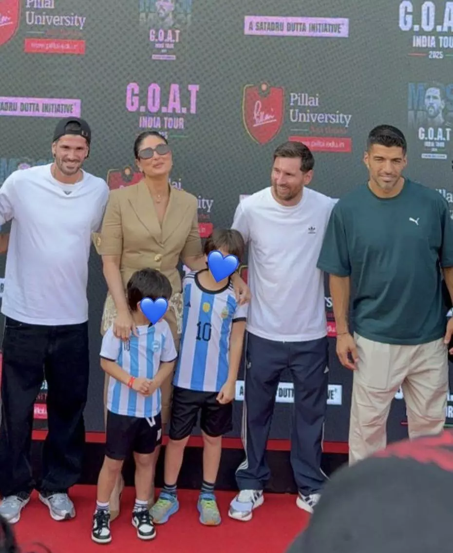 वानखेड़े स्टेडियम में लियोनेल मेस्सी ने बॉलीवुड स्टार करीना कपूर और उनके बेटों, तैमूर और जहांगीर से मुलाकात की।