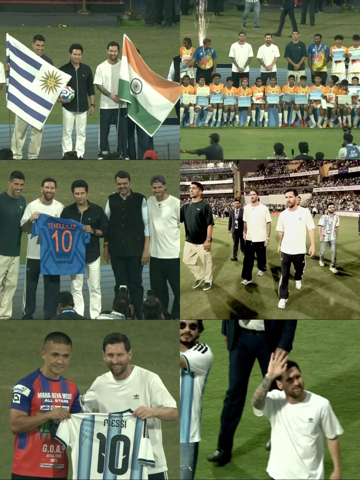 महाराष्ट्र के मुख्यमंत्री देवेंद्र फडणवीस, उनकी पत्नी अमृता और अन्य डेलीगेट्स मेस्सी, सुआरेज और डी पॉल के साथ स्टेज पर शामिल हुए। सभी ने बच्चों के साथ एक फोटो खिंचवाई।