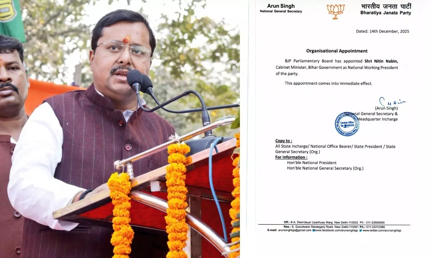 बीजेपी ने नितिन नबीन को राष्ट्रीय कार्यकारी अध्यक्ष बनाया।