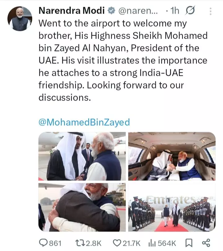 यह संक्षिप्त लेकिन अत्यंत महत्वपूर्ण दौरा वैश्विक राजनीति में भारत और यूएई की बढ़ती नजदीकियों का नया अध्याय है।
