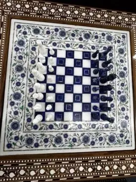 आगरा के कारीगरों द्वारा हाथ से तैयार यह मार्बल चेस सेट अपनी इनले वर्क, सेमी-प्रेशियस स्टोन और कलात्मक डिजाइन के लिए जाना जाता है। ODOP पहल के तहत प्रोत्साहित यह शिल्प भारत की पत्थरकारी कला और बारीक हस्तकला की सुंदर मिसाल है।
