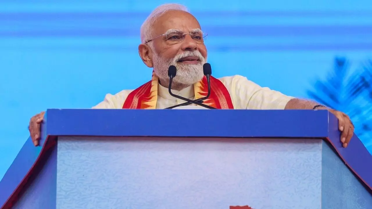 अहमदाबाद में कार्यक्रम को संबोधित करने के दौरान ली गई पीएम मोदी की तस्वीर (25 अगस्त, 2025)