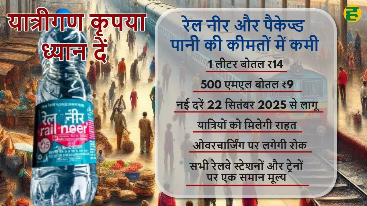 आपको बता दें कि रेल नीर की नई दरें 22 सितंबर 2025 से लागू होंगी।