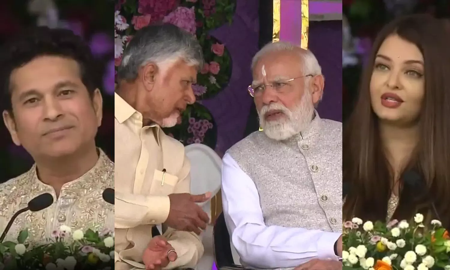 पुट्टपर्थी में साईं बाबा शताब्दी समारोह में प्रधानमंत्री नरेंद्र मोदी और एन. चंद्रबाबू नायडू के साथ ऐश्वर्या राय बच्चन, सचिन तेंदुलकर मौजूद रहे।