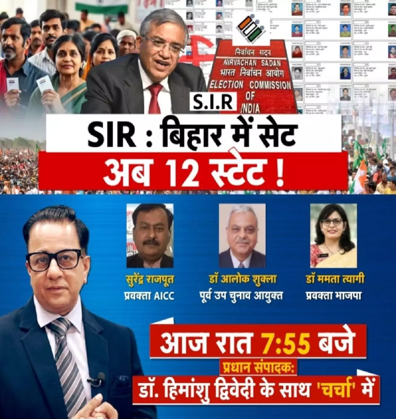 SIR: बिहार के बाद अब 12 राज्यों में वोटर लिस्ट अपडेट | देखें चर्चा आज 7:55 बजे