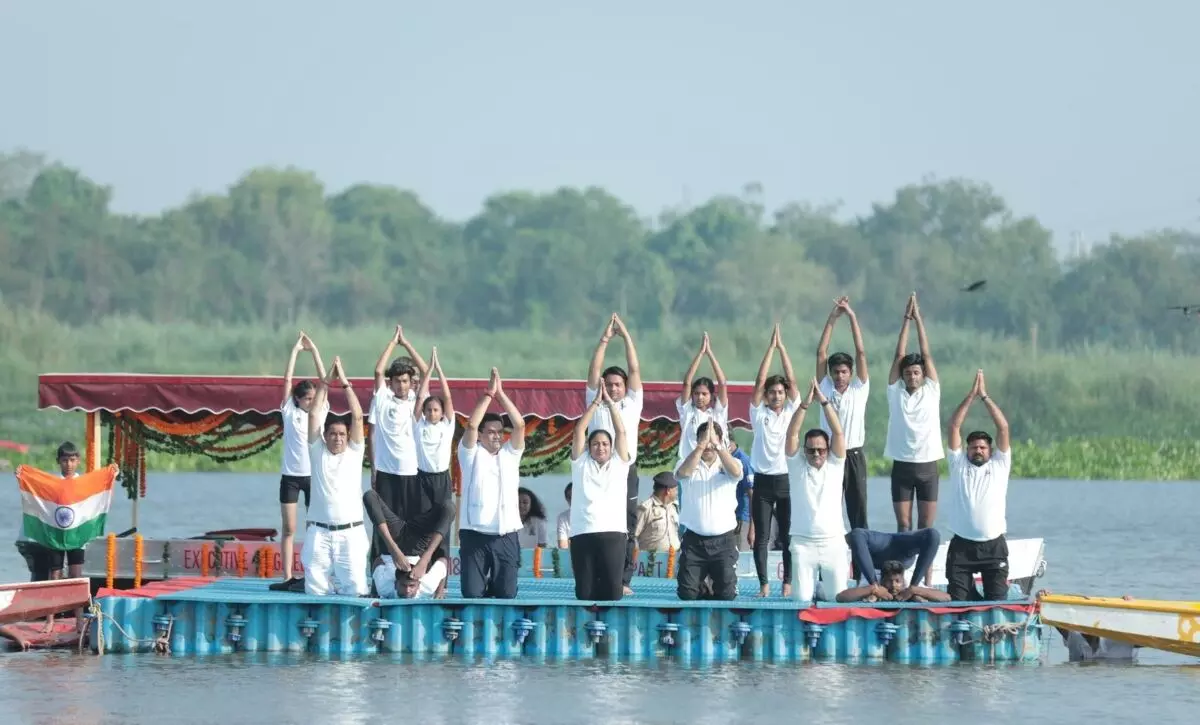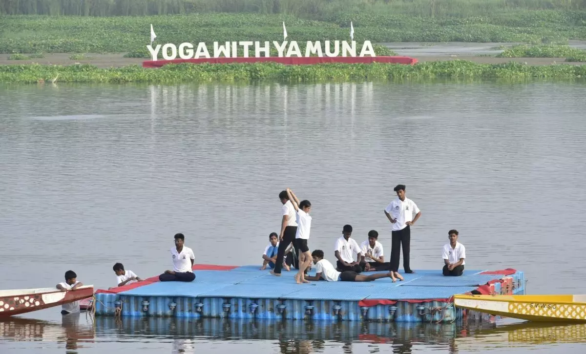 दिल्ली में यमुना नदी के बीच बच्चों ने योग प्रदर्शन कर सभी का ध्यान खींचा। साथ ही दिल्ली की सीएम रेखा गुप्ता और मंत्री कपिल मिश्रा ने भी योग किया।