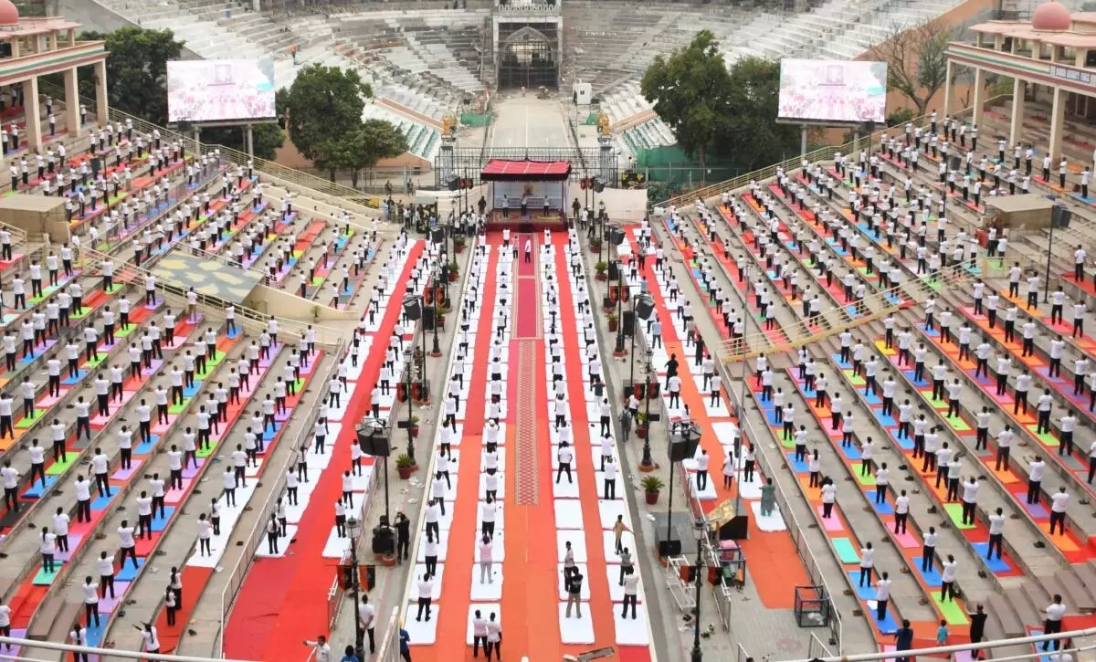 विशाखापट्टनम में 3 लाख लोगों और 40 देशों के राजनयिकों ने समुद्र के किनारे योग सत्र में हिस्सा लिया।