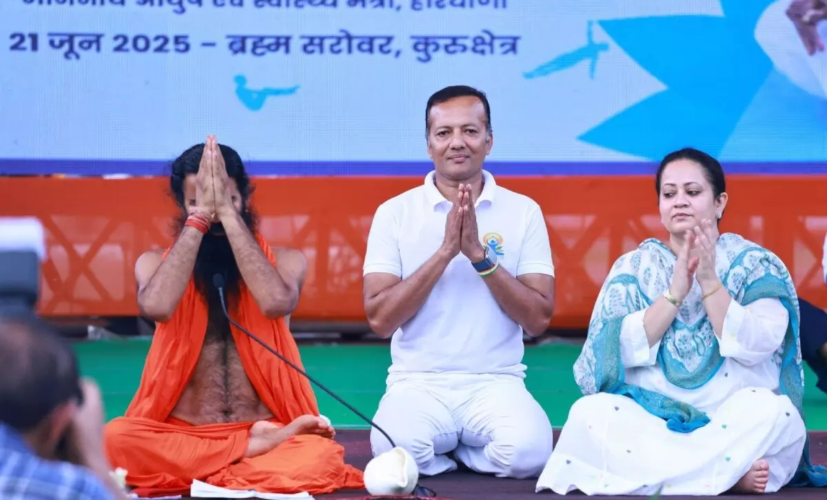 हरियाणा के मुख्यमंत्री नायब सिंह सैनी ने कुरुक्षेत्र में योग दिवस मनाया।