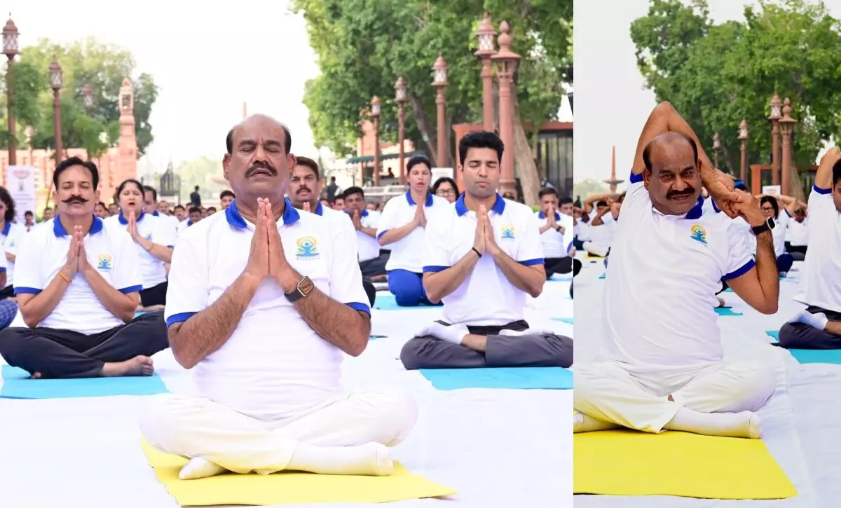 लोकसभा अध्यक्ष ओम बिरला ने संसद भवन परिसर में योग किया।