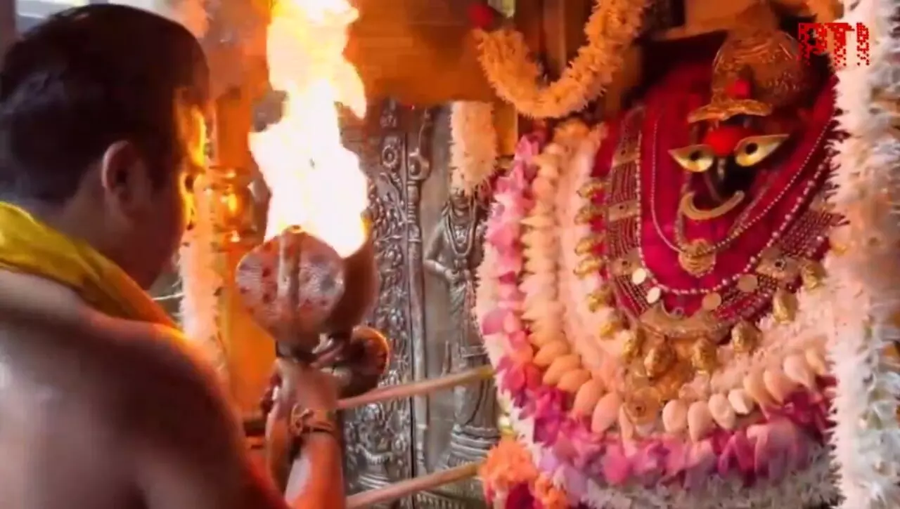 VIDEO | Mirzapur, Uttar Pradesh: Devotees throng Vindhyachal Temple on the third day of Shardiya Navratri.