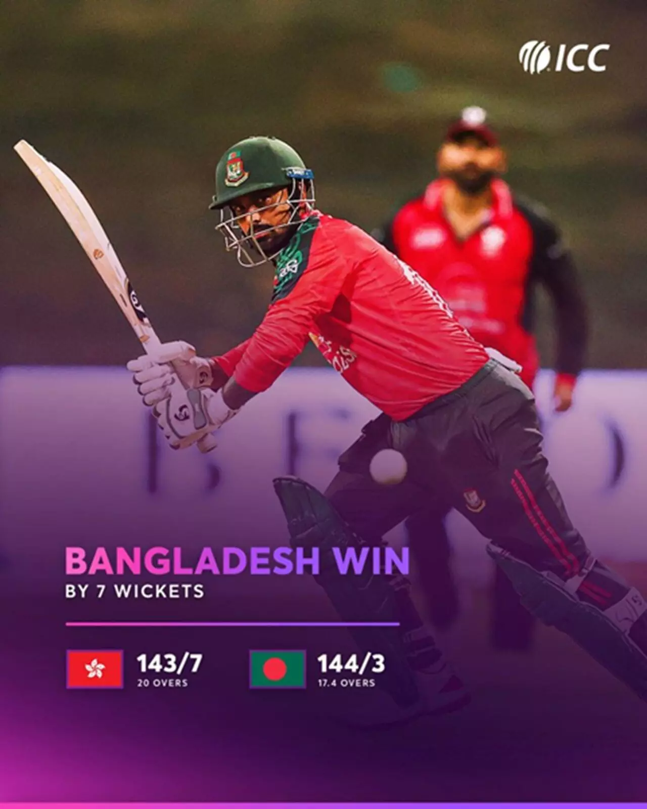 बांग्लादेश ने हांगकांग को 7 विकेट से हराकर टूर्नामेंट में विजयी आगाज़ किया।