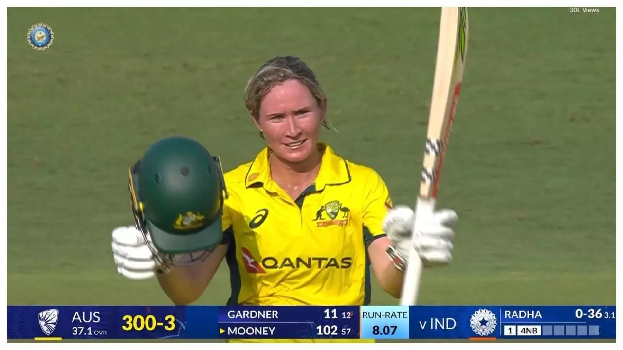 IND W vs AUS W: 60 चौके, 5 छक्के...बेथ मूनी का तूफानी शतक, ऑस्ट्रेलिया ने सबसे बड़ा स्कोर बनाया