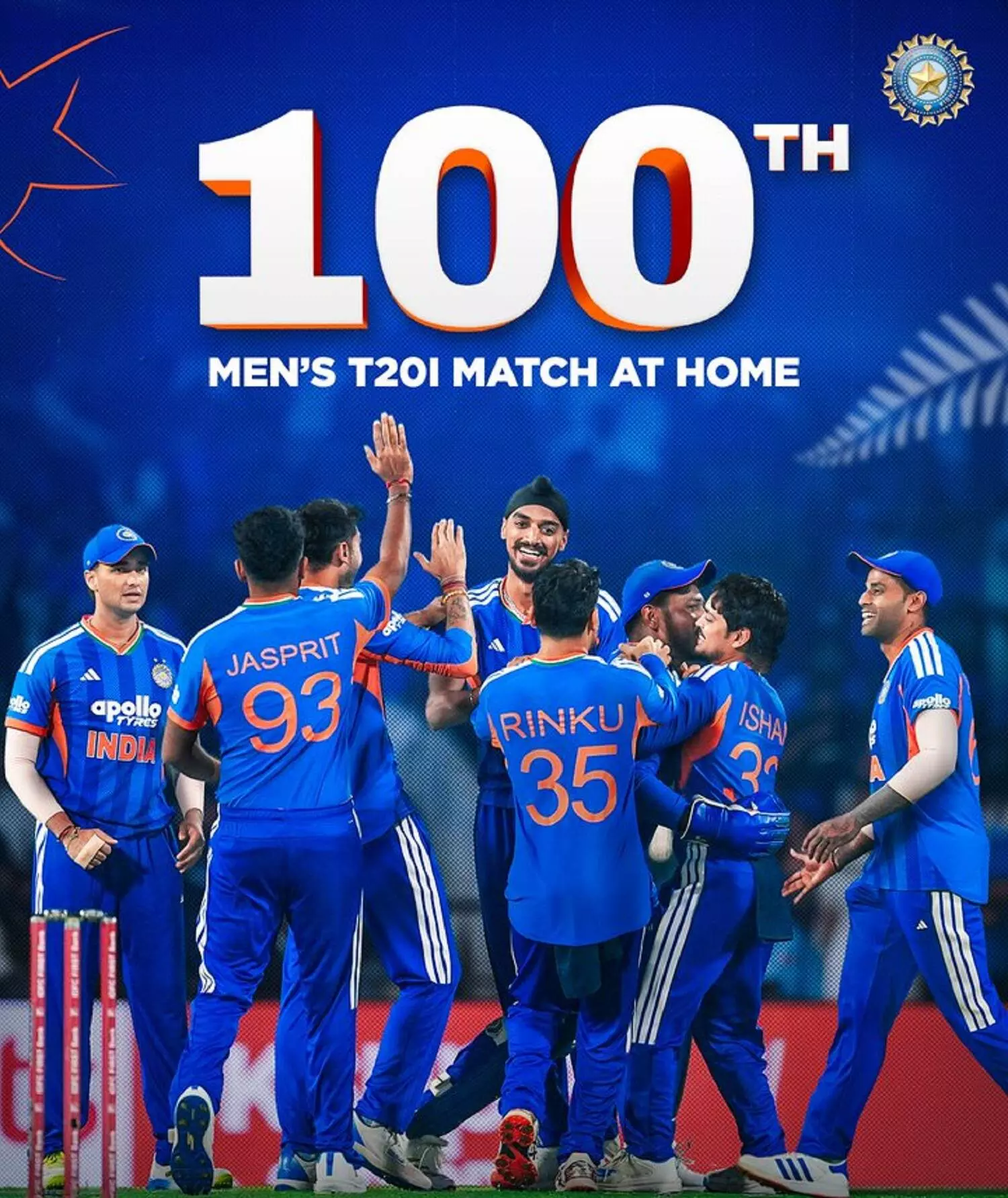 टीम इंडिया पुरुष क्रिकेट घरेलू मैदान पर अपना 100वां टी20 अंतरराष्ट्रीय मैच खेल रही है।