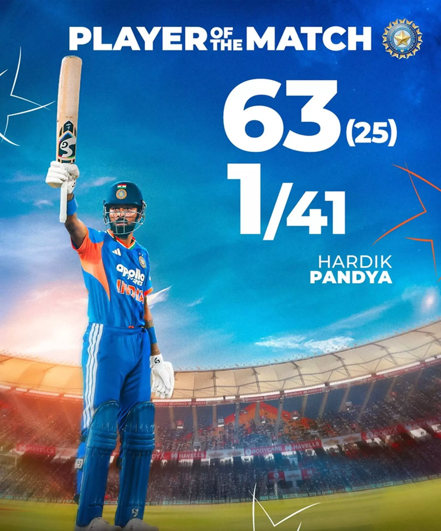हार्दिक पंड्या प्लेयर ऑफ द मैच रहे