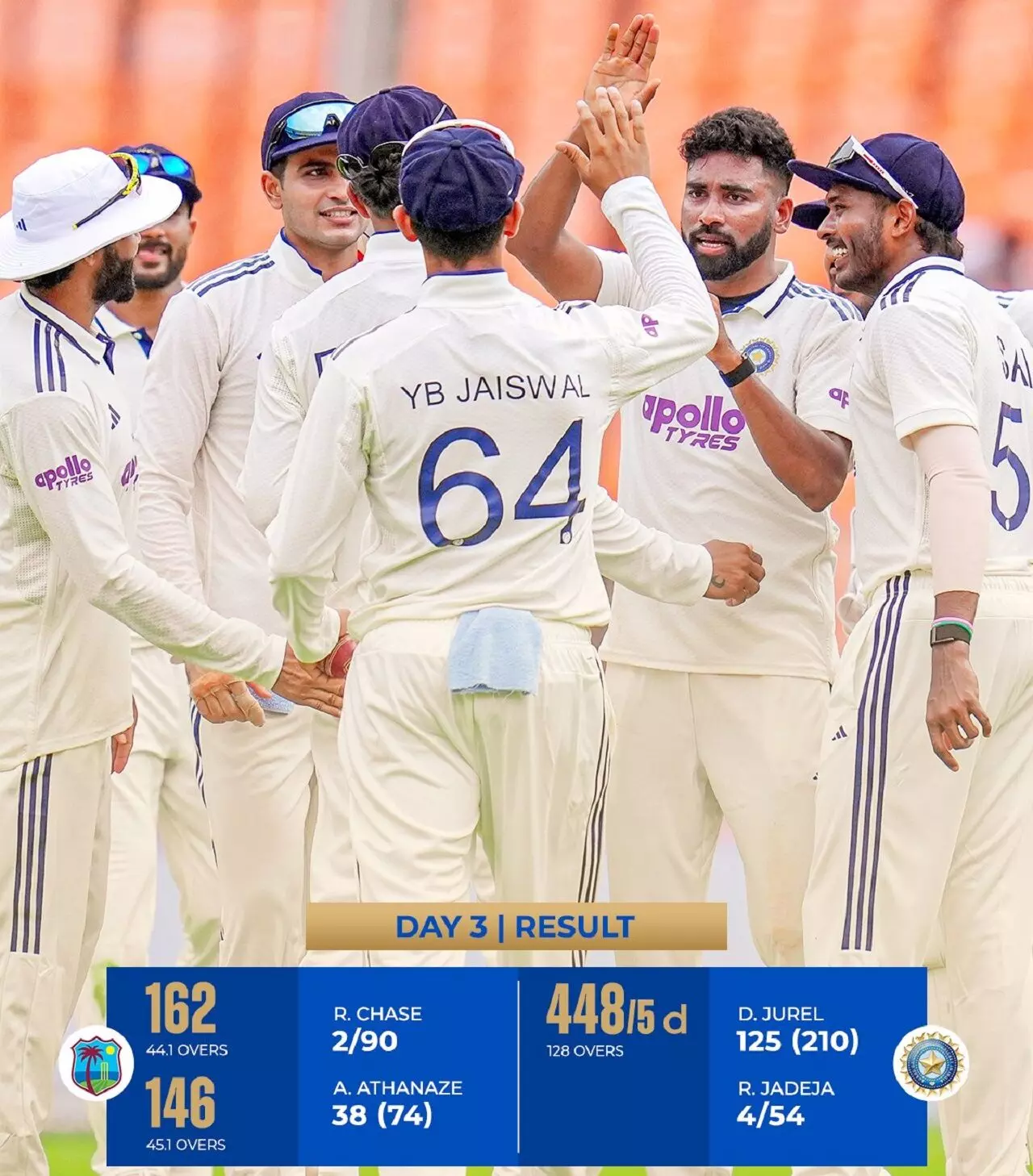 IND vs WI Score: भारत ने वेस्टइंडीज को पारी और 140 रनों से हराया; जडेजा का शतक के बाद विकटों का चौका