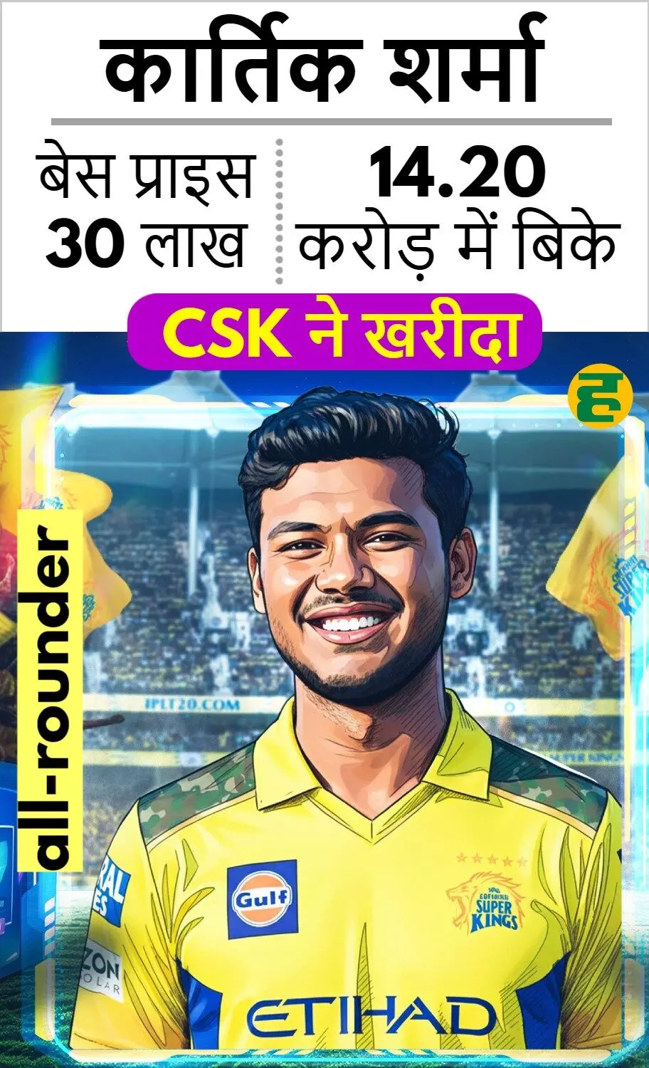 - कार्तिक शर्मा: चेन्नई सुपर किंग्स - ₹14.2 करोड़ - 2025