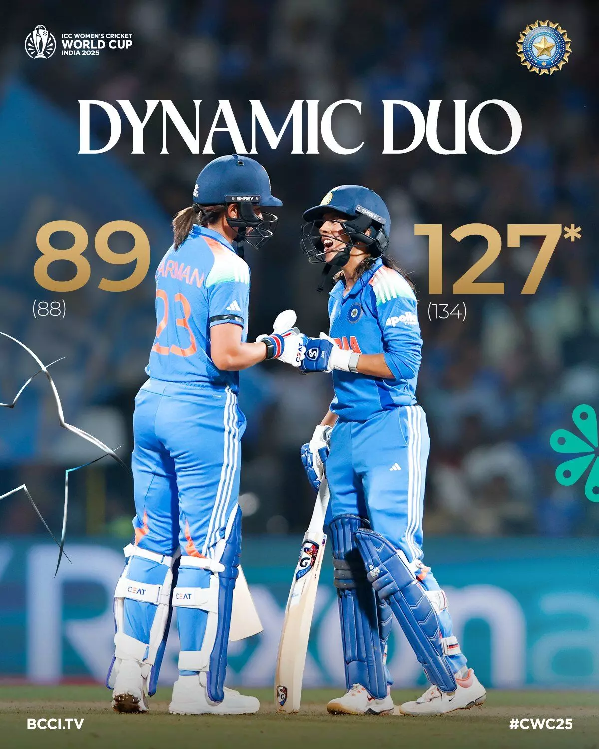 भारत ने ऑस्ट्रेलिया के आठ साल के दबदबे को खत्म किया। जेमिमाह महिला वनडे विश्व कप सेमीफाइनल में शतक जड़ने वाली दूसरी भारतीय बन गईं। उन्होंने अपनी कप्तान हरमनप्रीत कौर के साथ यह उपलब्धि साझा की, जिन्होंने 2017 सेमीफाइनल में इसी प्रतिद्वंद्वी (ऑस्ट्रेलिया) के खिलाफ नाबाद 171 रन बनाए थे। उस मैच में भारत ने 42 ओवर में 281/4 बनाकर जीत हासिल की थी, जबकि ऑस्ट्रेलिया 245 रन पर सिमट गई थी।