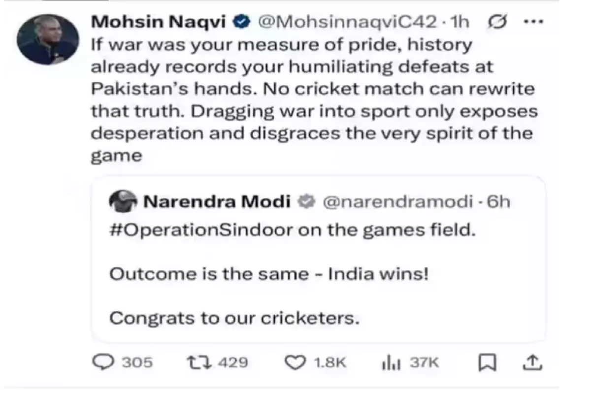 asia cup final: और कितना गिरोगे...पीएम मोदी के पोस्ट पर मोहसिन नकवी की बेशर्मी, क्रिकेट में युद्ध को घसीटा