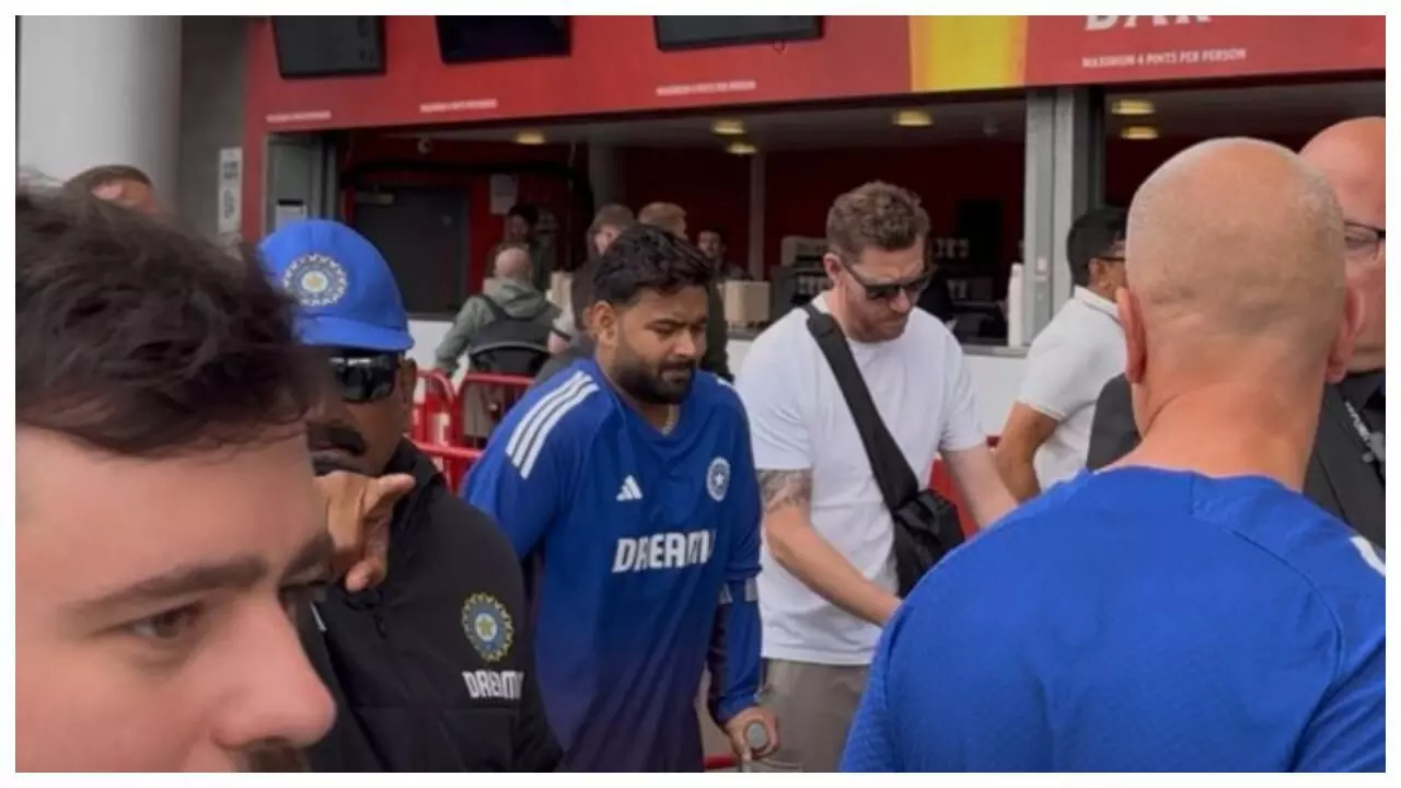Rishabh Pant arrived on crutches: इंग्लैंड के खिलाफ मैनचेस्टर टेस्ट में जब हालात भारत के खिलाफ जाते दिखे, तब एक चेहरा हर किसी के दिल को छू गया, वो थे ऋषभ पंत। पैर में फ्रैक्चर, डॉक्टर की सख्त हिदायत लेकिन फिर भी टीम के लिए तैयार खड़े थे पंत। पहली पारी में बल्लेबाजी के बाद दूसरी के लिए भी पंत तैयार हैं। उनका एक वीडियो सामने आया है, जिसमें वो आखिरी दिन बैसाखी के सहारे ओल्ड ट्रैफर्ड स्टेडियम में पहुंचे।
