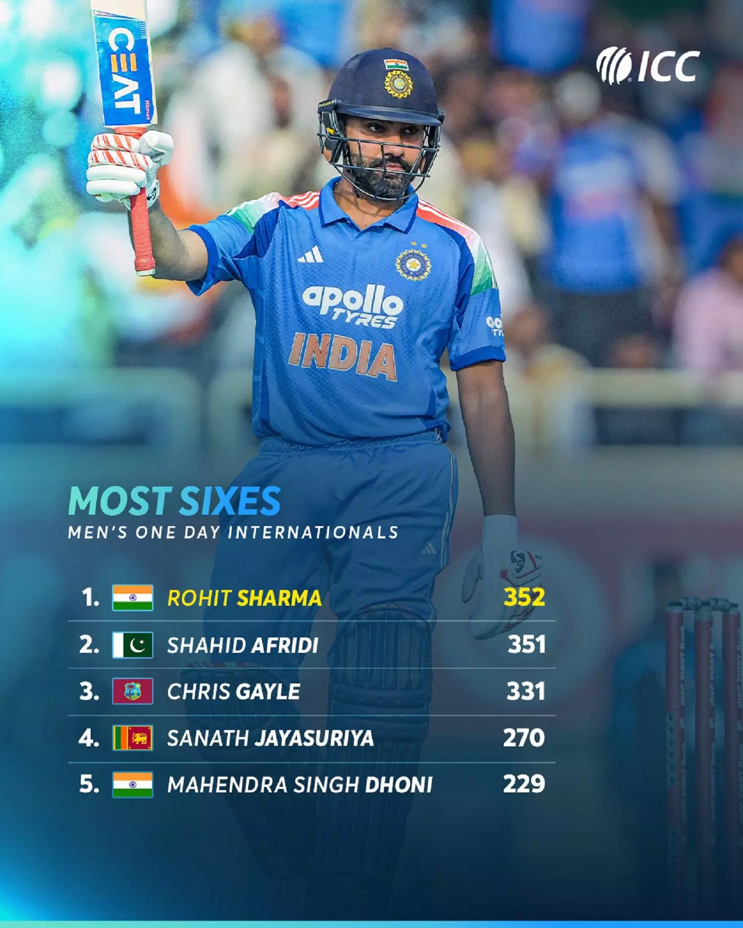 Rohit Sharma now holds the record for most sixes in ODI cricket history! 🙌
