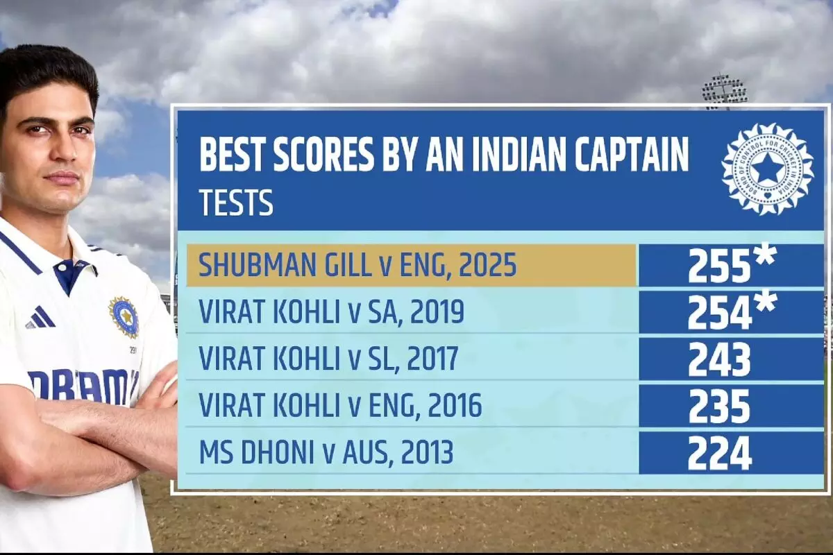 शुभमन गिल ने इंग्लैंड के खिलाफ एजबेस्टन में दोहरा शतक जड़कर विराट कोहली का भी रिकॉर्ड तोड़ दिया। उन्होंने 2016 में एंटीगुआ में बनाए गए विराट कोहली के 200 रन के रिकॉर्ड को पीछे छोड़ दिया, जो किसी भारतीय कप्तान द्वारा विदेश में सबसे बड़ा व्यक्तिगत टेस्ट स्कोर था।