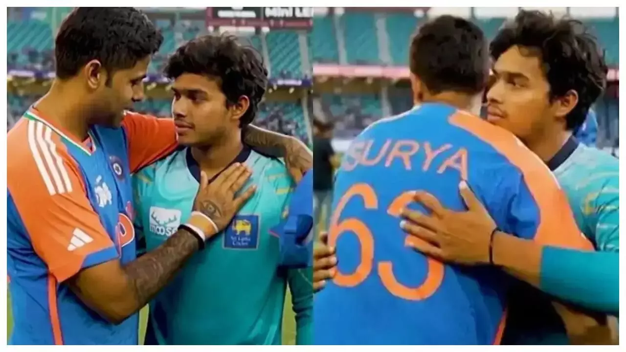 भारत-श्रीलंका मैच में सूर्यकुमार यादव वेलालागे के पास पहुंचे। उन्होंने उनके सीने पर हाथ रखकर कुछ शब्द कहे और लगातार उन्हें हौसला देते रहे। दोनों के बीच करीब दो मिनट तक बातचीत हुई। इस दौरान वेलालागे सिर हिलाकर उनकी बातें सुनते रहे। अंत में सूर्यकुमार ने उन्हें थपथपाकर उत्साह बढ़ाया।