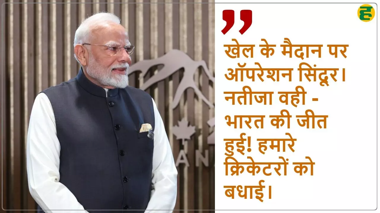 दुबई में खेले गए फाइनल में भारत ने पाकिस्तान को 5 विकेट से हराया। रिंकू सिंह ने आखिरी ओवर में विजयी चौका लगाकर मैच खत्म किया। इसके तुरंत बाद पीएम मोदी ने सोशल मीडिया पर जीत को ऑपरेशन सिन्दूर ऑन द गेम्स फील्ड बताया। उन्होंने इसे मई में हुए उस सैन्य अभियान से जोड़ा, जब भारतीय सेना ने पहलगाम आतंकी हमले के बाद पाकिस्तान में आतंक के अड्डों पर प्रहार किया था।