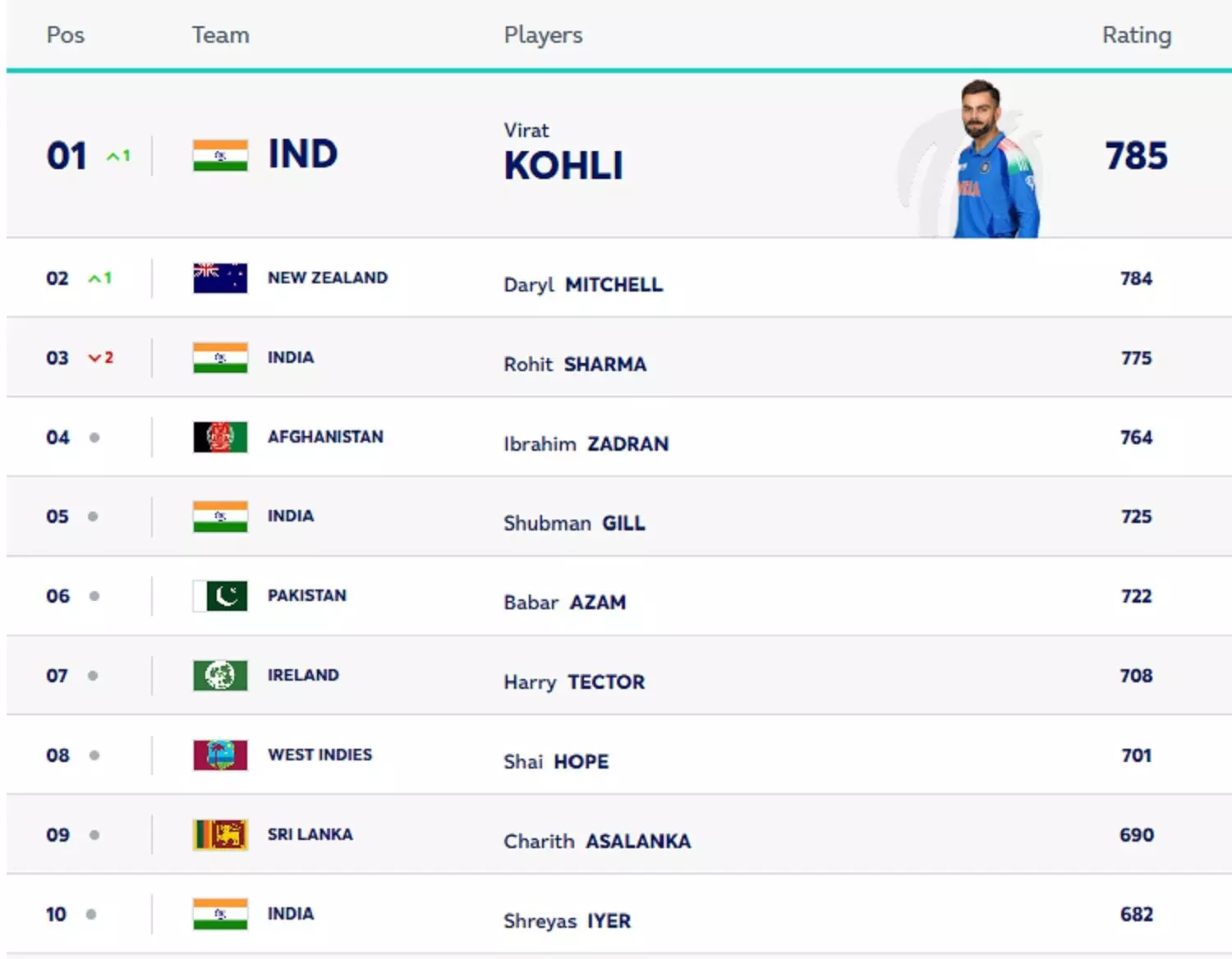 - विराट कोहली- 785 पॉइंट्स (नंबर-1)