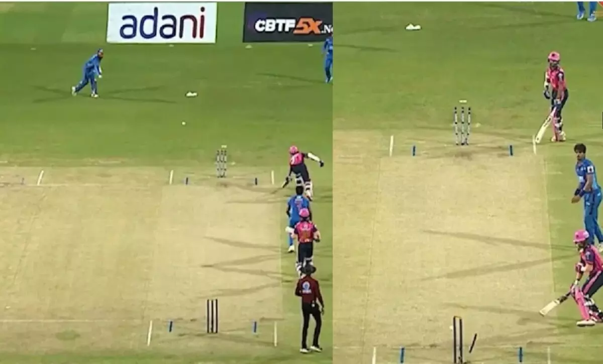 यह वाकया Raigad Royals की पारी के पहले ओवर में हुआ। टीम को 203 रन का लक्ष्य मिला था। पांचवीं गेंद पर सिद्धेश वीर ने गेंद को ऑफ साइड में खेला और रन के लिए दौड़े। लेकिन जैसे ही शिंदे ने तेजी से गेंद पकड़ी, वीर लौट गए। शिंदे ने तुरंत गेंद स्टंप्स की ओर मारी, जो पहले स्ट्राइकर एंड के स्टंप्स से टकराई और फिर नॉन-स्ट्राइकर एंड की ओर घूम गई। वहां हर्ष क्रीज से काफी बाहर थे। गेंद सीधे जाकर नॉन-स्ट्राइकर एंड के स्टंप्स पर लगी और हर्ष मोगावीरा बिना खेले ही रनआउट हो गए।