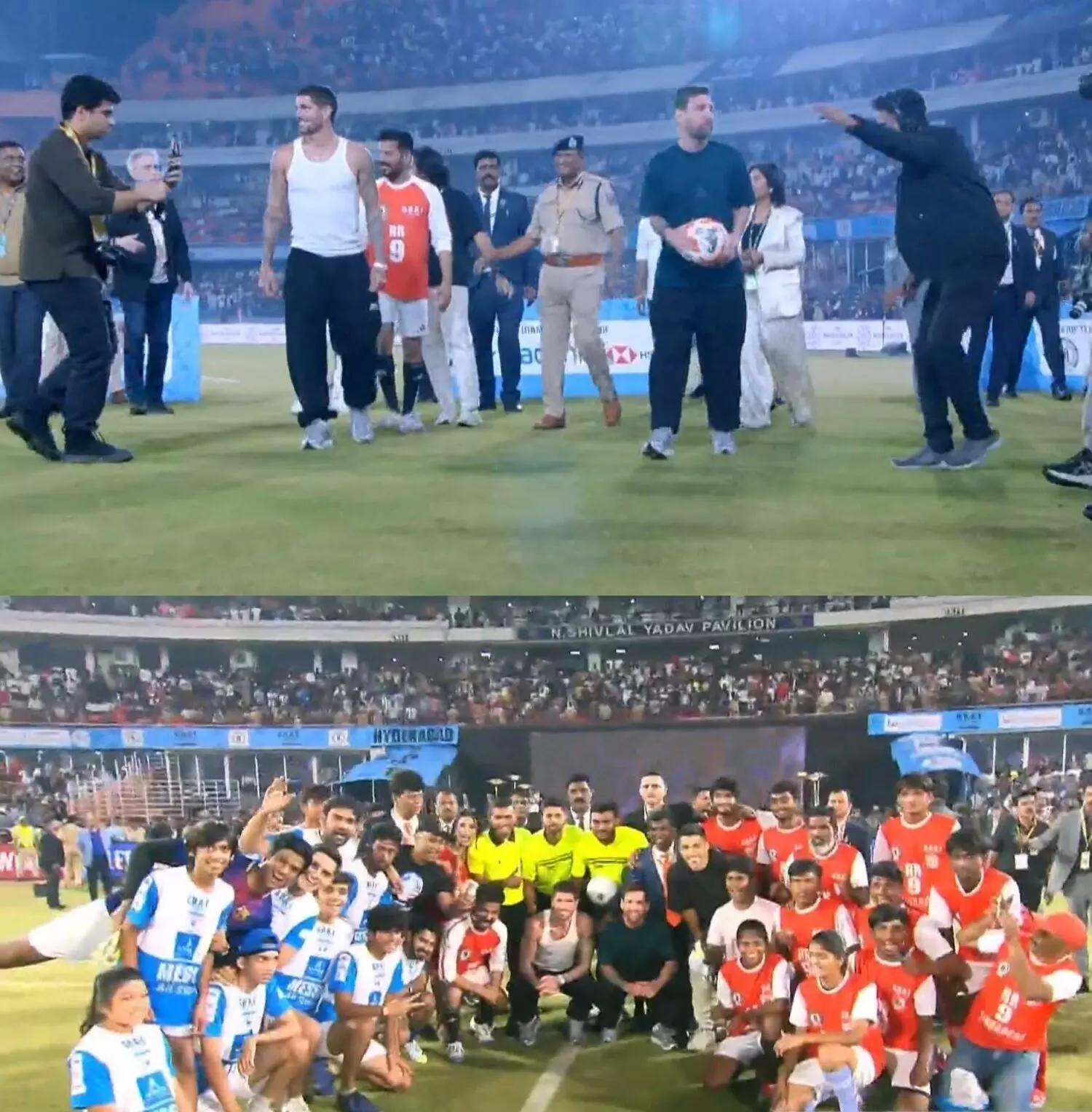 फुटबॉल के महान खिलाड़ी लियोनेल मेसी ने हैदराबाद के राजीव गांधी अंतर्राष्ट्रीय स्टेडियम को अपनी उपस्थिति से रोशन किया और तेलंगाना के मुख्यमंत्री रेवंत रेड्डी के साथ मैदान पर उतरकर फ्रेंडली मैच खेला।
