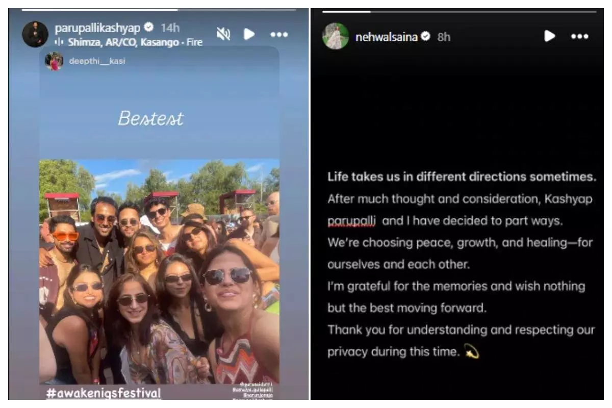 साइना नेहवाल ने सोशल मीडिया पर शेयर पोस्ट में लिखा, 'जिंदगी कभी-कभी हमें अलग रास्तों पर ले जाती है। काफी सोच-विचार के बाद, हमने अलग होने का फैसला लिया। हम शांति, विकास और खुद को बेहतर करने की राह चुन रहे। बीते लम्हों के लिए आभार और आगे के लिए शुभकामनाएं। कृपया इस वक्त हमारी प्राइवेसी का सम्मान करें।' हालांकि इस अलगाव पर पारुपल्ली कश्यप की ओर से अभी तक कोई बयान नहीं आया।