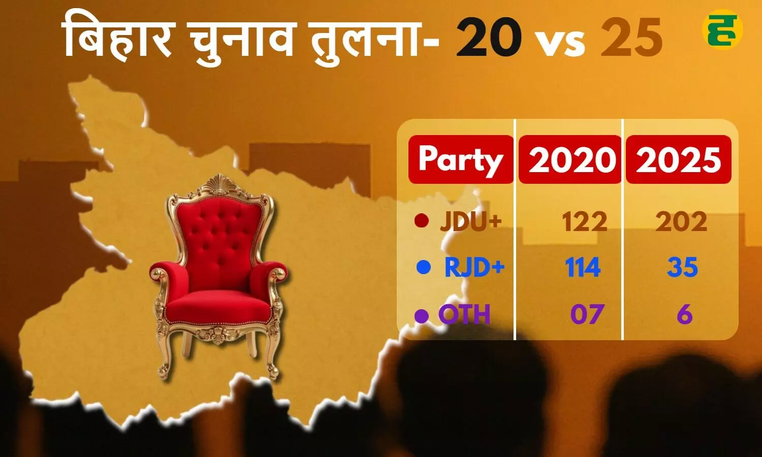 बिहार विधानसभा चुनाव में एनडीए ने इस बार इतिहास रच दिया। 243 सीटों में से 202 सीटें जीतकर गठबंधन ने रिकॉर्ड प्रदर्शन किया है। बीजेपी ने तो कमाल ही कर दिया, जिसने 101 में से 89 सीटें जीतकर सबसे बड़ी पार्टी बनकर उभरी है।