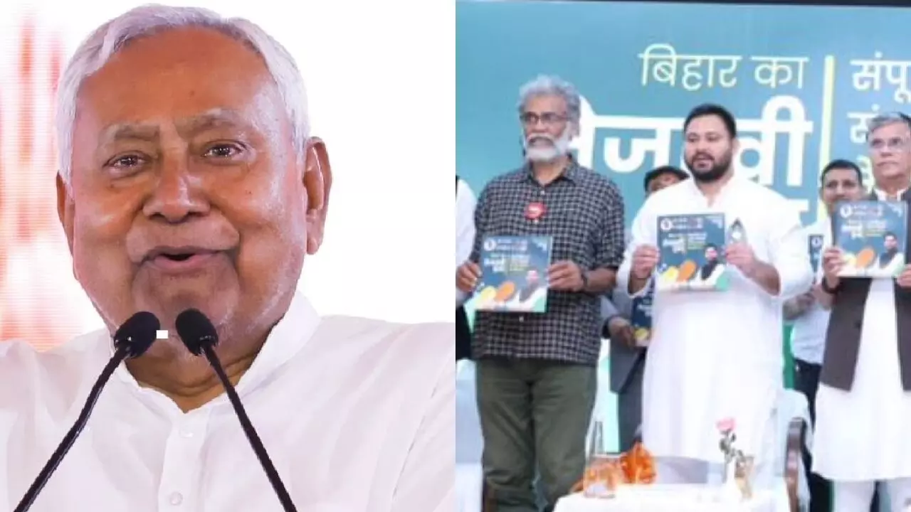 Bihar Election 2025: बिहार विधानसभा चुनाव 2025 जैसे-जैसे नजदीक आ रहे हैं, राजनीतिक बयानबाजी तेज होती जा रही है। मंगलवार को महागठबंधन के 'तेजस्वी प्रण' घोषणापत्र के जारी होते ही मुख्यमंत्री नीतीश कुमार ने विपक्ष पर जोरदार हमला बोला। उन्होंने कहा कि कुछ लोग युवाओं को सरकारी नौकरी और रोजगार के नाम पर झूठे वादे कर रहे हैं।