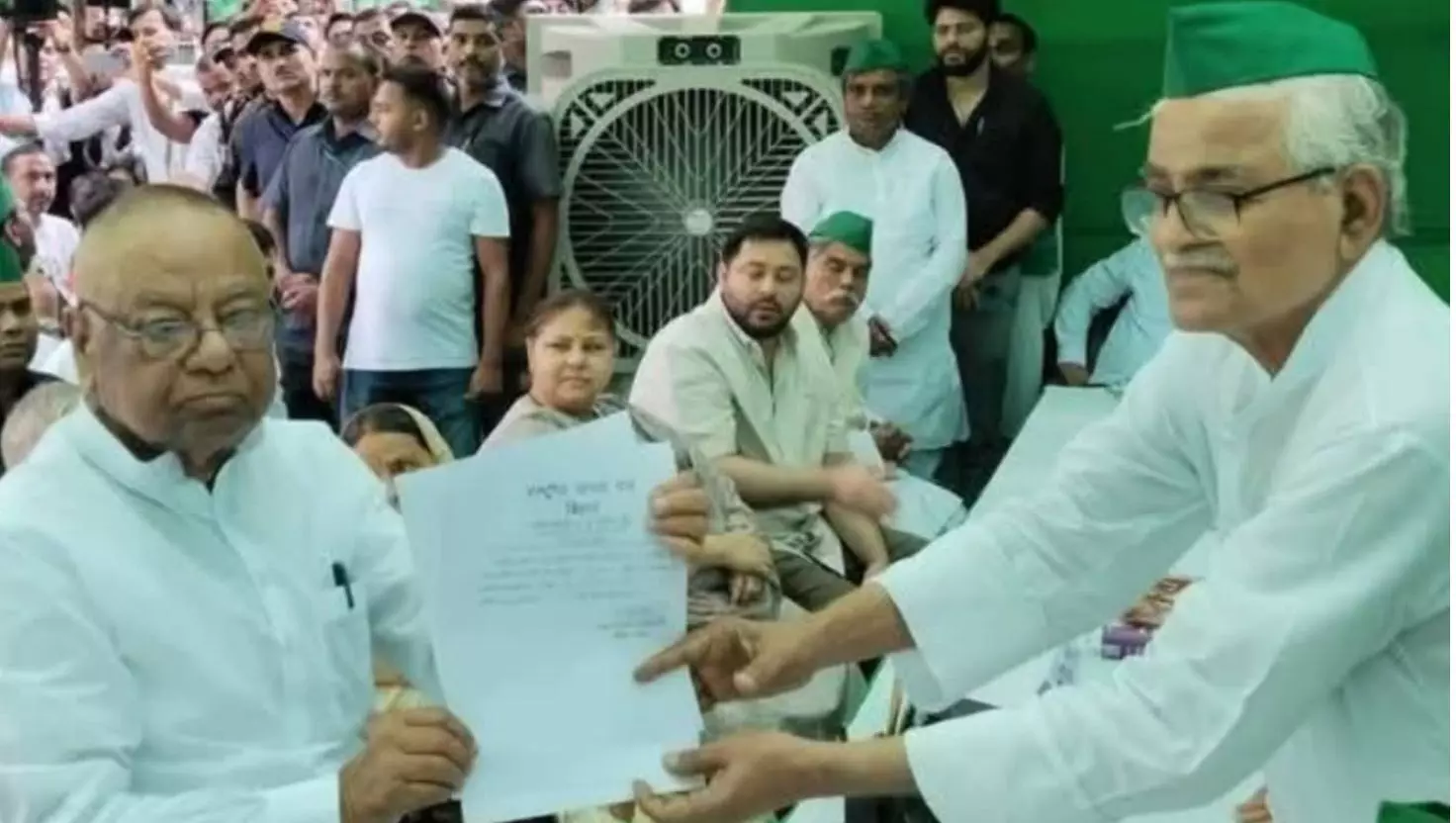 बिहार: RJD प्रदेश अध्यक्ष पद के लिए नामांकन दाखिल करते मंगनीलाल मंडल।