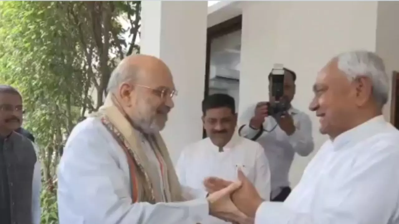 #WATCH | Union Home Minister Amit Shah meets Bihar CM Nitish Kumar at his residence in Patna pic.twitter.com/9kQMyzVp4r