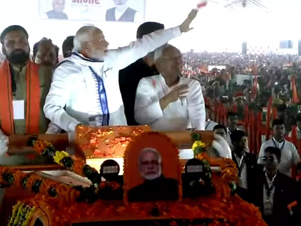 बिहार के सीएम नीतीश कुमार मंच से जनसभा को संबोधित कर रहे हैं। इसके बाद पीएम मोदी जनसभा को संबोधित करेंगे।