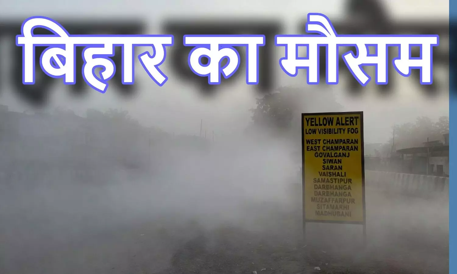 मौसम विभाग ने कोहरे को लेकर बिहार के 12 जिलों में येलो अलर्ट जारी किया है। इनमें पश्चिम चंपारण (बेतिया), पूर्वी चंपारण (मोतिहारी), गोपालगंज, सीवान, सारण (छपरा), वैशाली (हाजीपुर), समस्तीपुर, दरभंगा, मुजफ्फरपुर, शिवहर, सीतामढ़ी और मधुबनी शामिल हैं।