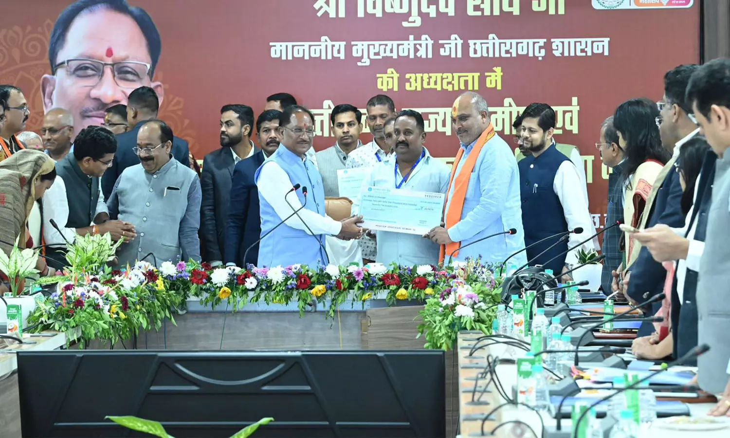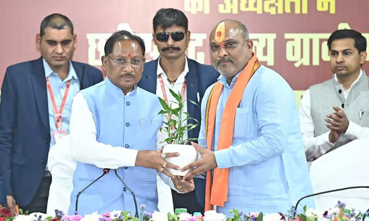 बैठक में उप मुख्यमंत्री अरुण साव, स्वास्थ्य मंत्री श्यामबिहारी जायसवाल, राजस्व मंत्री टंकराम वर्मा, महिला एवं बाल विकास श्रीमती लक्ष्मी राजवाड़े, अनुसूचित जाति विकास मंत्री गुरु खुशवंत साहेब, स्कूल शिक्षा मंत्री गजेन्द्र यादव, सांसद बृजमोहन अग्रवाल, छत्तीसगढ़ राज्य ग्रामीण एवं अन्य पिछड़ा वर्ग क्षेत्र विकास प्राधिकरण के उपाध्यक्ष ललित चंद्राकर सहित अन्य विधायकगण एवं अन्य जनप्रतिनिधि, मुख्यमंत्री के प्रमुख सचिव सुबोध कुमार सिंह, सचिव बसवराजू एस, शासन के विभिन्न विभागों के सचिव, आईजी, कमिश्नर, कलेक्टर एवं अन्य वरिष्ठ अधिकारीगण उपस्थित थे।