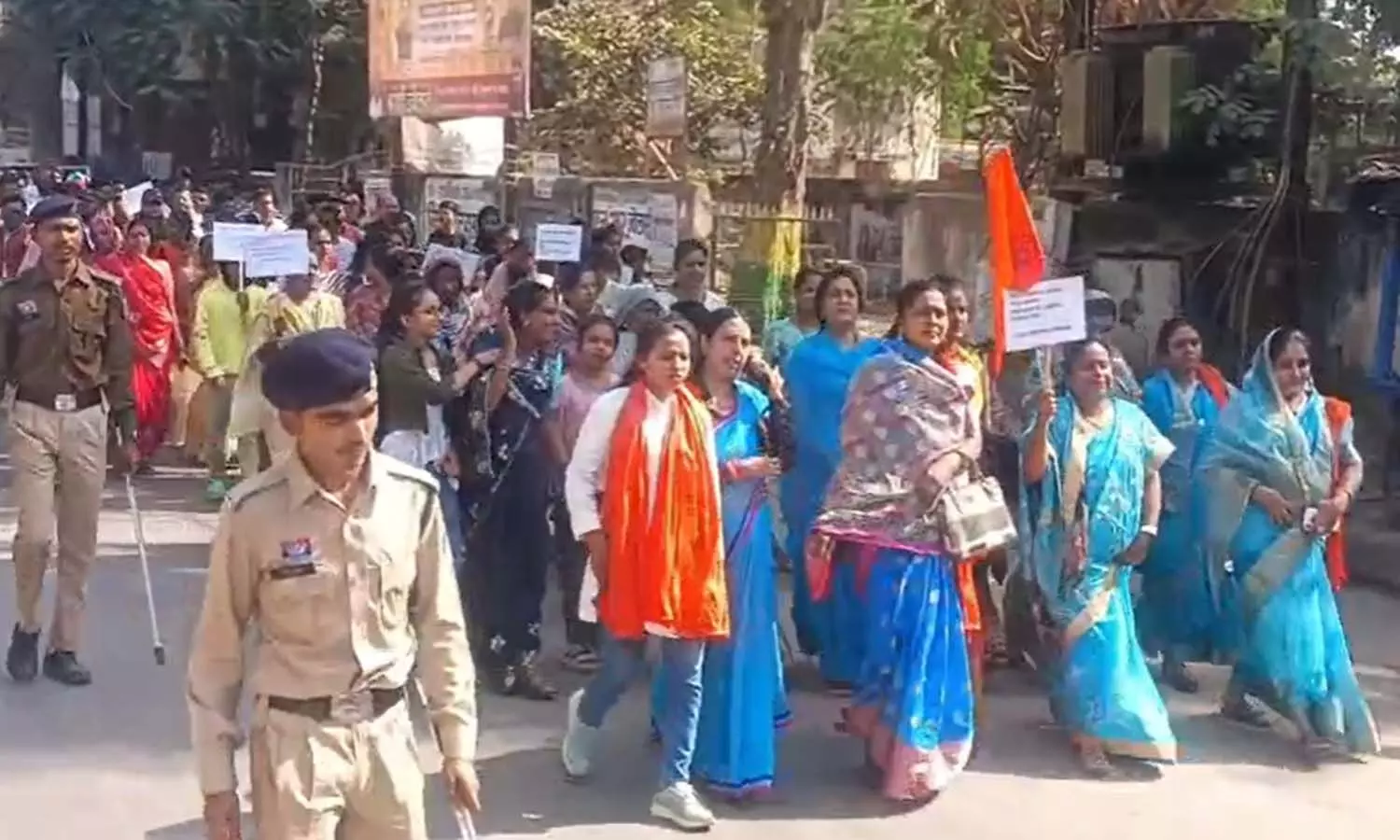 बलौदा बाजार में बंद के समर्थन में निकली रैली का दृश्य