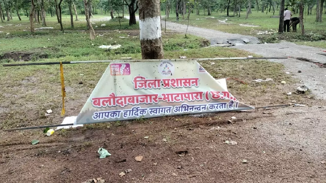 बलौदाबाजार प्रशासन द्वारा 'टूर दे बलौदाबाजार साइक्लोथॉन' कार्यक्रम का आयोजन सोनबरसा संरक्षित वन में किया गया था। कार्यक्रम के बाद यहां गंदगियों का अंबार लग गया है। pic.twitter.com/C92CoHYM9X